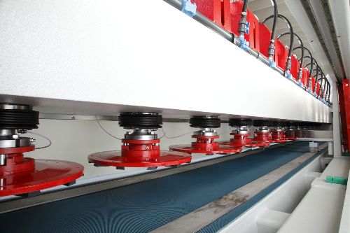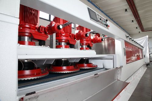 Die Schleifstraße VENUS ist eine Bandmaschine zum Polieren von Streifen und Fliesen aus Marmor und andere kalkhaltige Materialien.